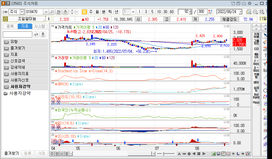 25일 조일알미늄 주가는 전 거래일 대비 6.25%(145원) 상승한 2465원에 거래를 마쳤다.