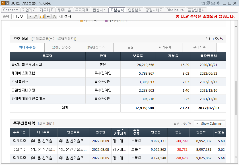 ▶ 최대주주 및 특수관계인 현황