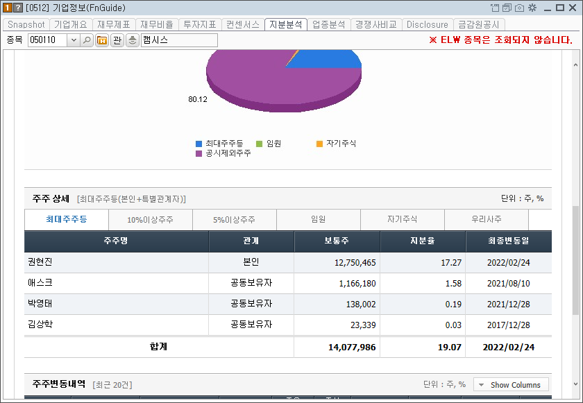- 2022년 3월 전년동기 대비 연결기준 매출액은 26.6% 증가, 영업이익 흑자전환, 당기순이익 흑자전환. 초소형 전기차 시장 강세와 전반적인 부문의 매출액 증가로 인해 영업이익과 당기순이익 흑자전환. 삼성전자 1차 협력사로서 주력사업인 스마트폰 카메라모듈 시장에서 선도 업체로서의 지위를 공고히 하고 있으며, R&D 역량 기반으로 기술진입장벽 강화 노력 중임.
